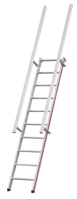 › Stufenanlegeleiter mit beidseitigem Handlauf.