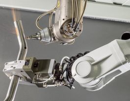 Ein Laser mit 5 Achsen zum Schneiden von tiefgezogenen Blechen und gebogenen Rohren oder Modulen. Die Teile werden hierbei entweder durch einen Roboter positioniert oder ruhen stationär während der Bearbeitung durch den Laserstrahl. Daher die Bezeichnung 5D-Schneiden durch die BLM GROUP.