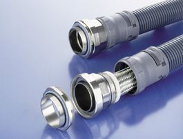 Die Anschlussarmaturen gewährleisten einen optimalen Abgriff des Geflechts sowie eine Verbindung von Abschirmgeflecht und Schutzrohrsystem.
