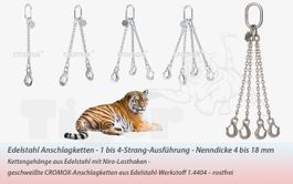 ROSTFREIE Anschlagmittel aus CROMOX sorgen für Sicherheit beim Heben und Bewegen von Lasten. Anschlagketten aus Edelstahl bieten Ihnen eine hohe Beständigkeit gegenüber aggressiven Medien.