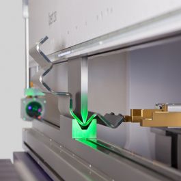Das Abkanten ist ein Verfahren, um ein flaches Werkstück aus Blech zu biegen. Es folgt in der Verarbeitungskette unmittelbar nach dem Schneiden. Das Werkstück liegt auf einer Matrize mit V-förmiger Öffnung. Ein keilförmiges Werkzeug (Stempel) drückt das Werkstück in die V-Öffnung und biegt es auf diese Weise bis zu einem gewünschten Winkel.