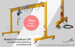 Mobiler Portalkran mit elektrischem Elektrokettenzug und Rollfahrwerk oder Elektrofahrwerk - jetzt online bestellen!