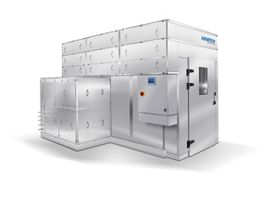 Abluftfreier Chargentrockner mit maßgeschneiderter Trockenkammer für pharmazeutische Erzeugnisse und Lebensmittel. Die Wärmepumpe sorgte für Effizienz und Energieeinsparung.
